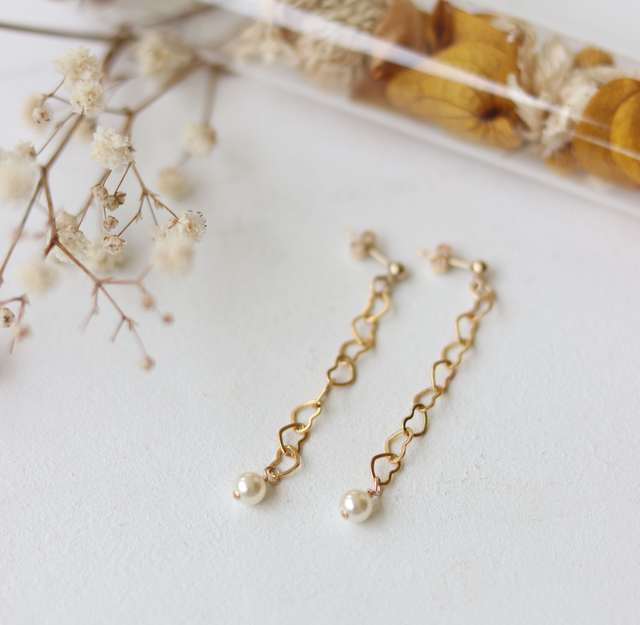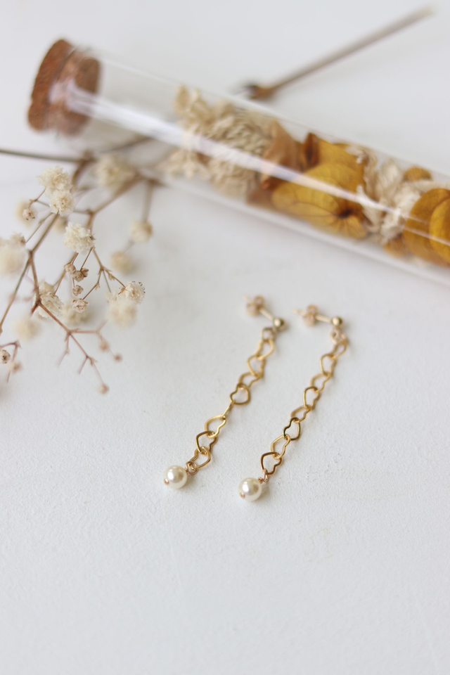 - Chaîne coeur en Plaqué Or 3 microns, clou et apprêts en Gold filled 14k , perle cristal Swarovski
