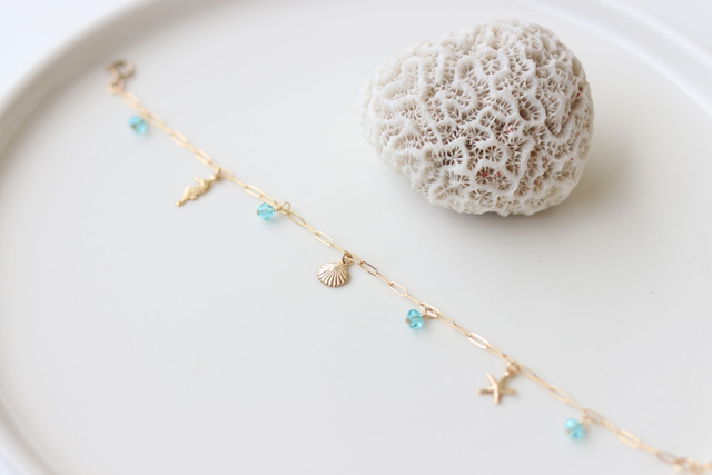 Bracelet chaîne rectangle en Or Laminé (Gold Filled) 14K et perles de cristal