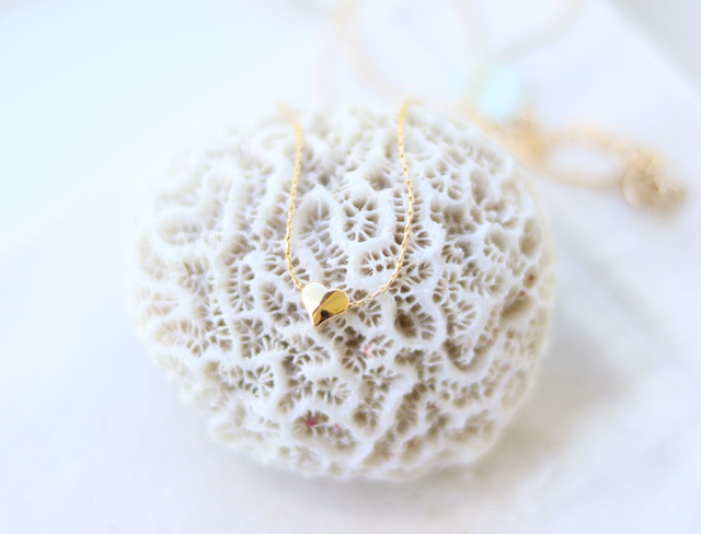 • - Chaîne fine en Or Gold Filled* 14K et perle cœur 6mm en Plaqué OR 3 microns
