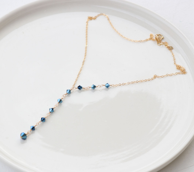 Collier forme T en Or Laminé 14k (Gold filled) et perles de cristal tissées