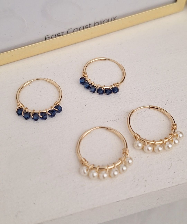 Mini créoles MIDNIGHT en Or Laminé 14k (Gold Filled) et perles de Cristal