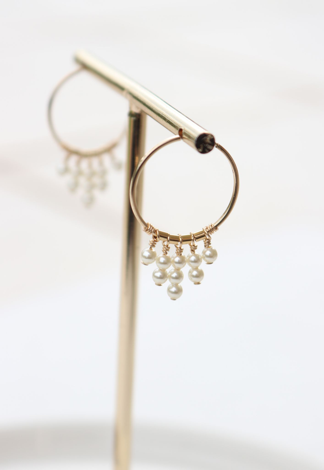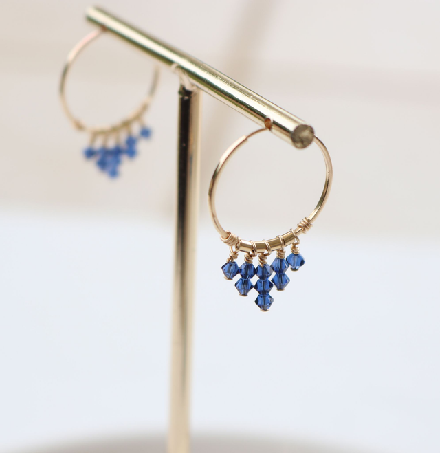 Petites créoles MIDNIGHT RAIN en Or Laminé 14k (Gold Filled) et perles de Cristal