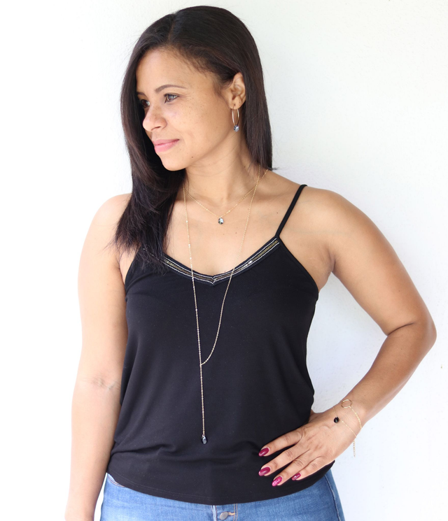- Sautoir Y en Or Gold Filled* 14 carats, Pendentif forme poire en Cristal