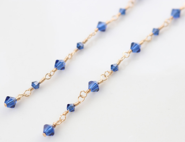 BO dormeuses longues tissées en Or Laminé 14k (Gold Filled) et perles de cristal
